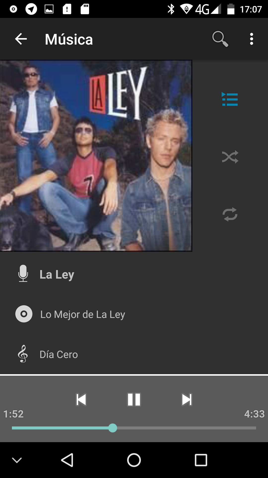 Comenzando por el reproductor de audio, te cuento que veremos al clásico reproductores de Android, el cual no cuenta con una interfaz bonita, pero sí cumple con reproducir tú música. En el veremos los controles de reproducción, la carátula del álbum, y el nombre de la canción y artista.