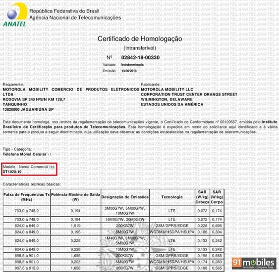Precisamente un documento filtrado del sitio web de la Agencia Nacional de Telecomunicaciones (ANATEL) de Brasil corrobora esto.