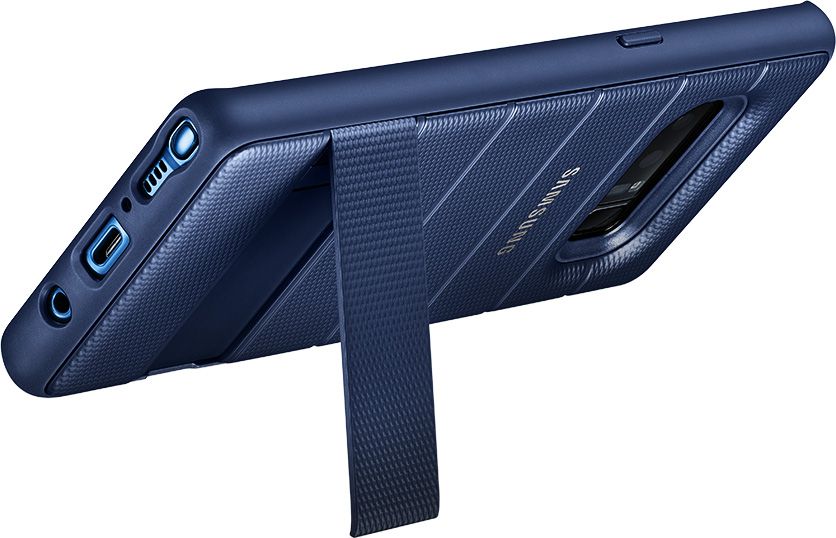 Estamos ante una funda con certificación militar MIL-STD-810G-516.7, lo que quiere decir que brinda una protección y resistencia muy segura. Además, y haciendo competencia a una compañera suya, la Funda de pie con Clear View, esta Funda Standing Protectora incorpora un soporte para poder dejar inclinado nuestro Note 8 y disfrutar de contenido multimedia por medio de su pantalla.