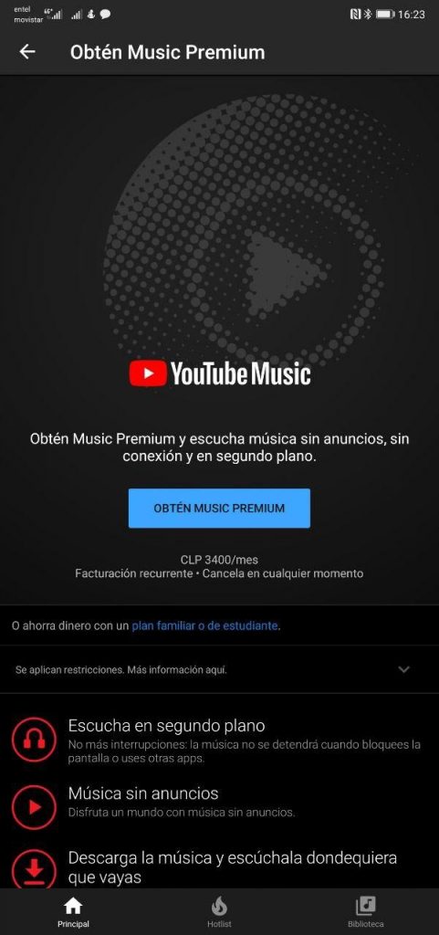 En el caso de que quieras contratar solo el servicio de YouTube Music, deberás descargar e instalar la app YouTube Music, ingresar con tu cuenta y seguir los pasos escritos anteriormente.