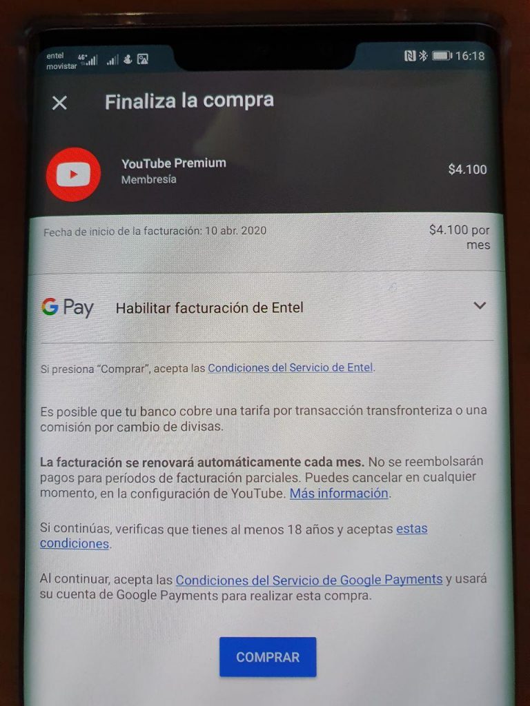 De esta manera, YouTube Premium se suma a Spotify y Netflix como opciones para poder contratar con cargo al servicio móvil del operador Entel. Más info y condiciones aquí.