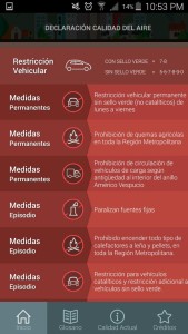 La aplicación cumple con su objetivo principal, informar al usuario de las medidas que se deben respetar. En ella, se informa sobre los dígitos de los vehículos (con sello verde y sin él), que no pueden circular por la R. M. durante el día entre las 7:00 y 21;00 horas. Además de la restricción vehicular informa acerca de: