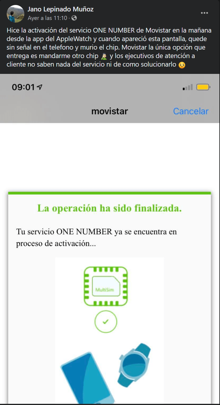 Pues bien, con este servicio están teniendo problemas algunos clientes de Movistar, quienes reportan que al momento de querer activar el servicio One Number, automáticamente se quedan sin servicio móvil en el iPhone y también en el Apple Watch.