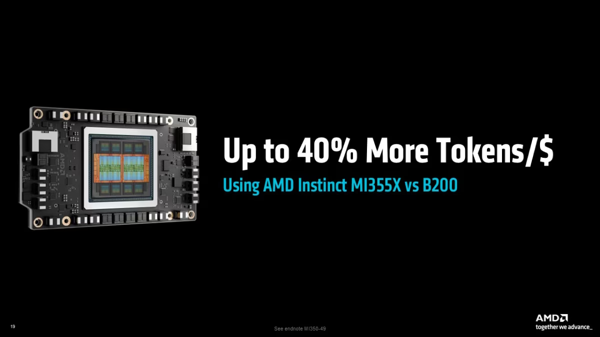 La compañía asegura que su MI355X puede procesar hasta un 40% más tokens por dólar en comparación con alternativas de Nvidia. En una industria donde los costos operativos pueden definir el éxito o fracaso de un proyecto de IA, esta métrica es determinante.