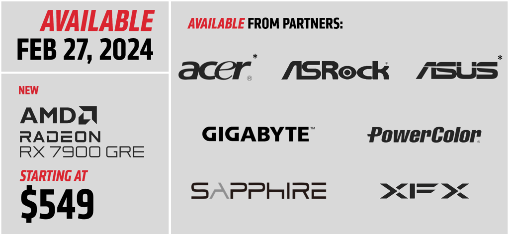 La tarjeta gráfica AMD Radeon RX 7900 GRE de 16 GB llega a todo el mundo el 27 de febrero de la mano de los principales partners a partir de 549 USD.