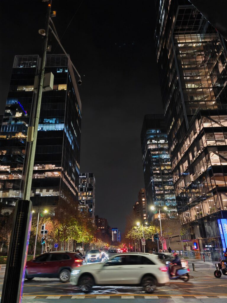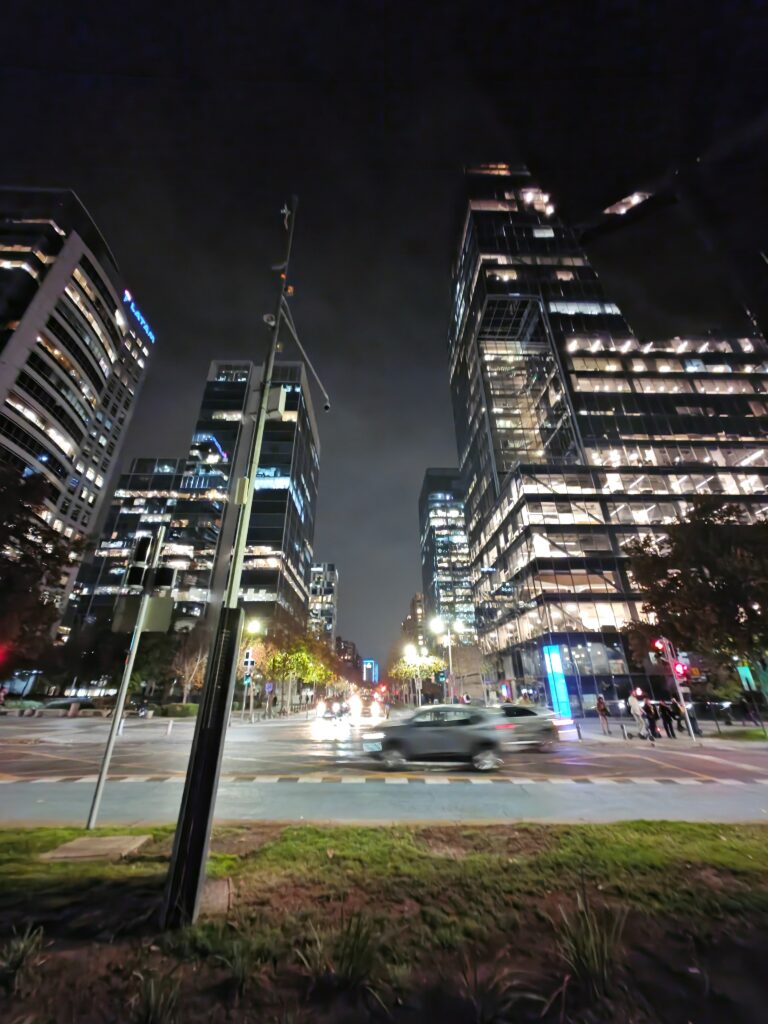 De noche también tenemos un muy buen rendimiento, y si bien no creo que sea el mejor en términos de detalle capturado y rango dinámico, creo que gana en el «realismo» de la foto. Vale decir, la toma parece una foto nocturna (no exagera con el procesado), y las tonalidades son más frías (tirando hacia los azules), lo cual suele corresponder a una foto con baja luz.