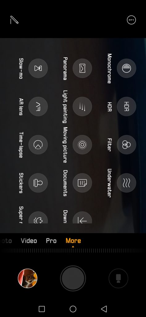Al tener una alianza con Leica, Huawei utiliza un formato de interfaz bastante parecido a las que usa la firma alemana en sus cámaras, esto incluye el diseño de los iconos y la fuente de letra que se utiliza. En el menú principal nos encontramos con 5 modos principales destinados a la fotografía: automático, manual, retrato, noche y apertura.