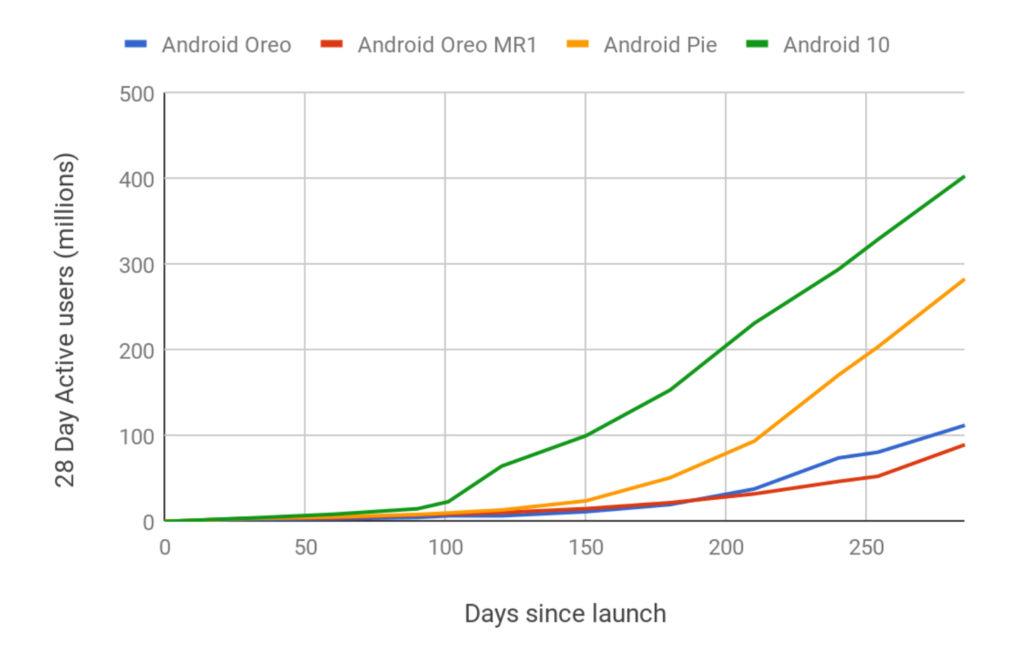 Según informaron desde la empresa del buscador, dicha variante se encuentra instalado en más de 100 millones de dispositivos desde su presentación. Es decir, estos cinco meses de existencia representan una aceptación un 28% mejor que su antecesor, Android 9 Pie.