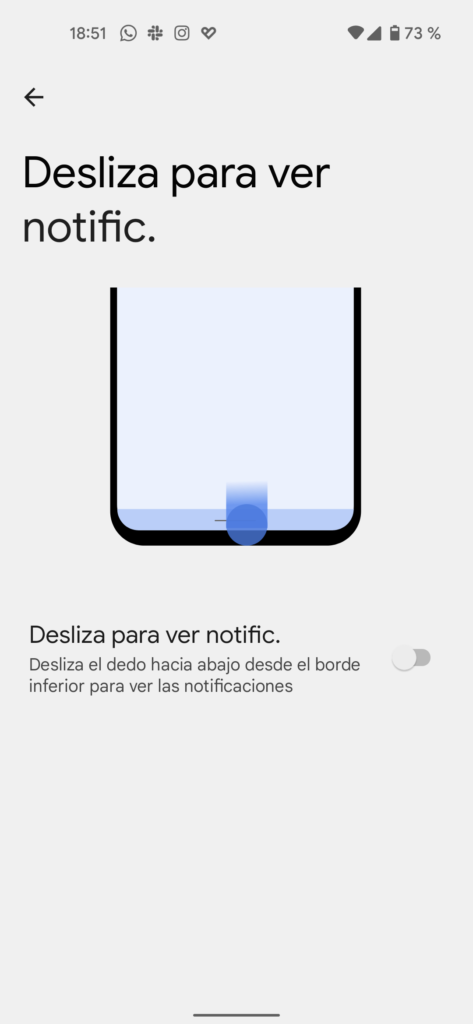 Un nuevo gesto se ha añadido al deslizar la barra de navegación, además de poder acceder al modo de una mano, podemos utilizar este gesto para acceder a la barra de notificaciones, función que en todos los Pixel con lector de huellas en la parte trasera realizan deslizando en el lector. Y bueno, este nuevo gesto podría indicar que el Pixel 6 usará la misma tecnología de Samsung, Xiaomi y otras empresas para desbloquear el teléfono.