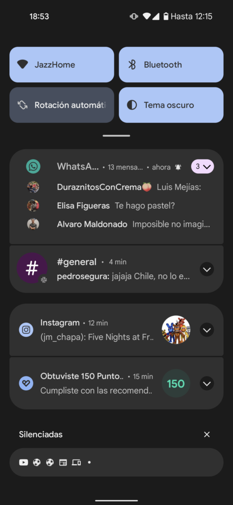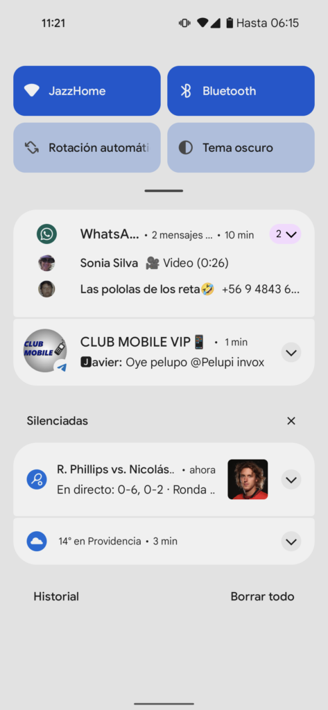 Respecto a las notificaciones, todo es más redondo, pero su funcionamiento es el mismo que se implementó en Android 11 y la única novedad es el regreso del botón para posponer notificaciones, en caso de que queramos leer un correo electrónico o un mensaje en cierto tiempo más.