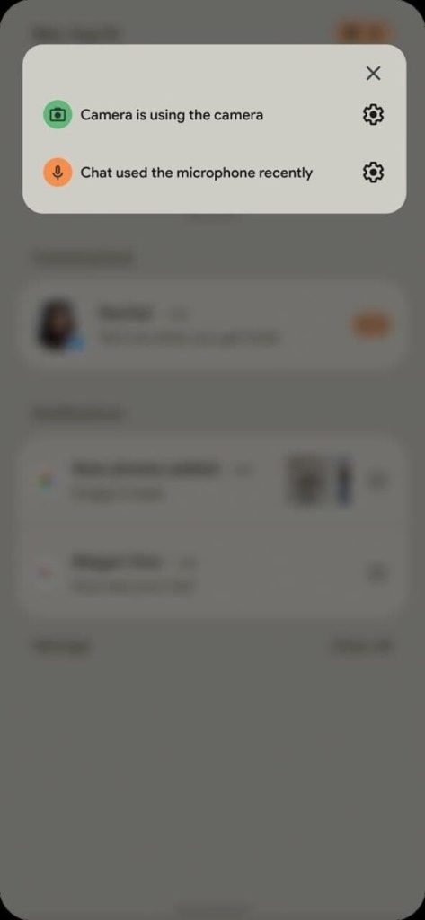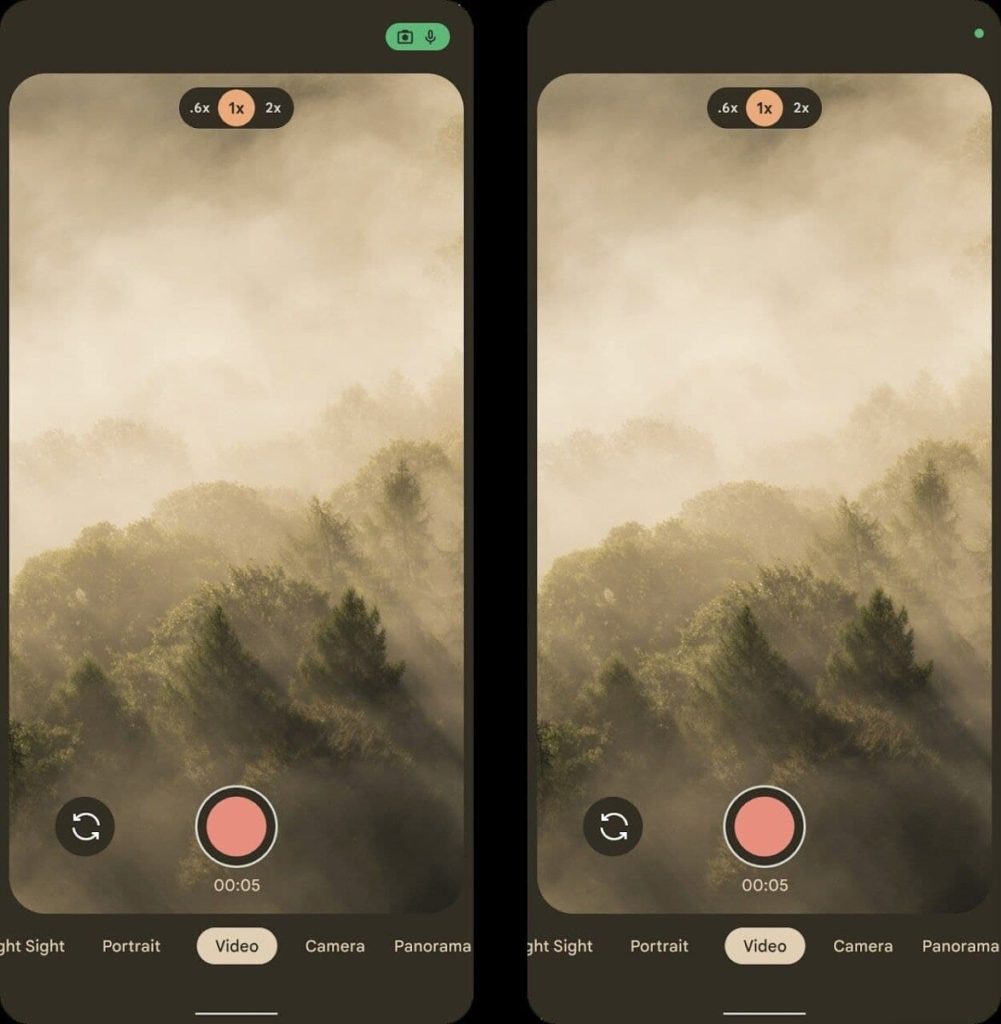 Un aspecto importante y que Android 11 actualmente carece, es respecto a la privacidad del usuario al utilizar el micrófono y la cámara, ya que en Android 12 se mostraría en la barra de estado si es que alguno de estos dos permisos está activo, tal y como se ve en la maqueta de la nueva interfaz de usuario de la cámara.