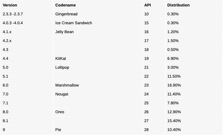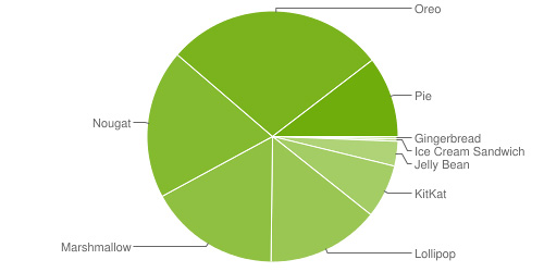 Pero Android Oreo se ha convertido el versión más usada hasta el momento, ya que al juntar sus versiones 8.0 y 8.1, da un total de 28,3%, le sigue Android Nougat con un 19,2%, luego tenemos a Android Marshmallow alcanzar 16,9%, y finalmente vemos a Android Lollipop que con sus versiones 5.0 y 5.1 alcanzan el 14,5%.