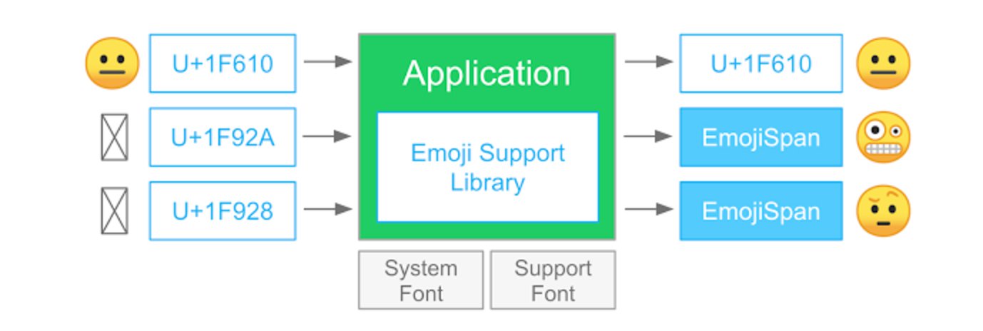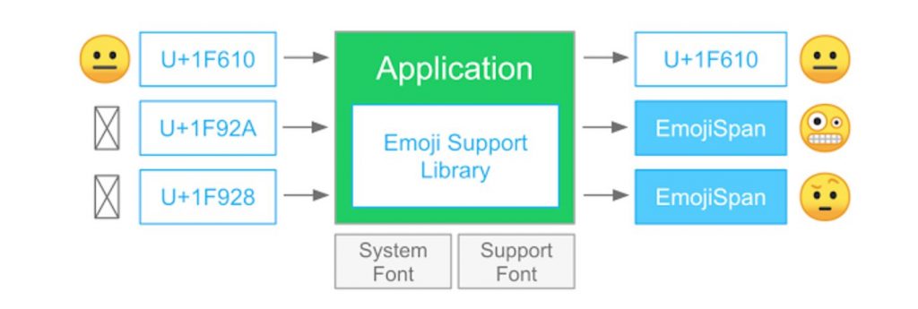Con la última versión del sistema operativo de Google, ahora existe la opción de poder crear una suerte de biblioteca de emojis llamada EmojiCompat en el código interno de las aplicaciones, lo que compatibilizaría los emojis a través de las diferentes versiones de Android, y si los desarrolladores de aplicaciones optan por usar EmojiCompat, podremos visualizar los emojis, por ejemplo, de Android O aunque nos encontremos en Android Marshmallow. La biblioteca funcionará para Android 4.4 KitKat en adelante, por lo que no tendremos que preocuparnos de la versión.