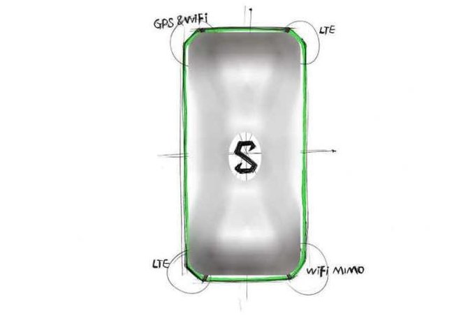 Como podemos ver, la distribución hace sentido, pues nos encontramos con la antena para el WiFi y el GPS en un costado, mientras que el otro se ha reservado para la conexión LTE. Otra cosa que es digna de notar es que el dispositivo parece tener la forma de una X, curioso, a decir lo menos.