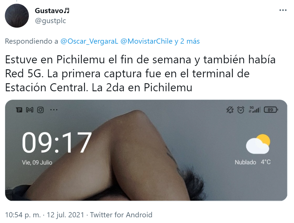 También hemos recibido el reporte de nuestro lector en Twitter, Gustavo @gustplc, quien nos comenta haber captado señal 5G de Movistar con su POCO F2 Pro 5G en el terminal de Estación Central, esto en Santiago, y también en Pichilemu, en la VI Región.