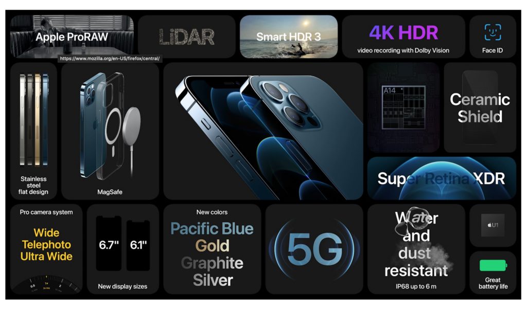Este año vemos diferentes tamaños. El modelo Pro tiene 6.1 pulgadas y el modelo Pro Max tiene 6.7 pulgadas. En este formato lucirán sus pantallas XDR Display, que al parecer son bastante similares a las de sus respectivos predecesores. Sí es interesante que está protegida por un nuevo Ceramic Shield, co-creado en conjunto con la gente de Corning, lo que debería hacerlo muchísimo más resistente.