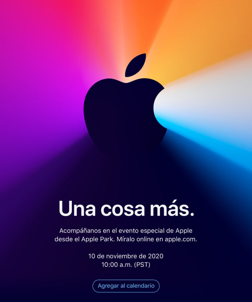 Presentándose con un «Una cosa más», Apple ha enviado una otra invitación a los medios, convocándolos a un nuevo evento desde el Apple Park que será llevado a cabo en línea durante el próximo martes 10 de noviembre, a las 10 AM hora del pacífico — que sería a las 14 horas (en Chile).