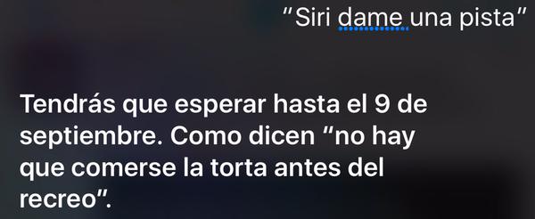 Esta vez los de Cupertino decidieron hacer algo distinto y entretenido, ya que aseguran que podemos pedirle pistas a Siri. Solo basta con que digas «Oye Siri, dame una pista» para que el asistente virtual comience a adelantar ciertas cosas del evento, o en algunos casos, solo generar más ansiedad.