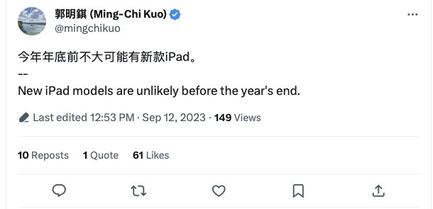 Tal como podemos ver en su cuenta de Twitter, el tipster ha confirmado que este 2023 no veremos ningún nuevo iPad. Recordemos que Ming-Chi Kuo Kuo suele distinguir entre la información que ha obtenido de sus fuentes en la cadena de suministro y su propia investigación basada en su experiencia en Apple.