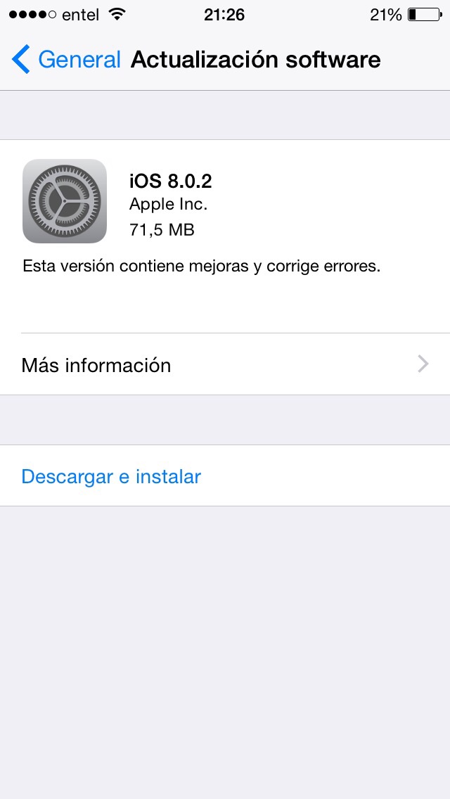 Lo de ayer fue una locura. Es muy raro ver a una empresa del calibre de Apple equivocarse así, pero ha arreglado todo en menos de un día. Hace pocos minutos acaba de lanzarse iOS 8.0.2, que principalmente corrige los mencionados errores de conectividad y Touch ID en los nuevos iPhone 6 y iPhone 6 Plus.