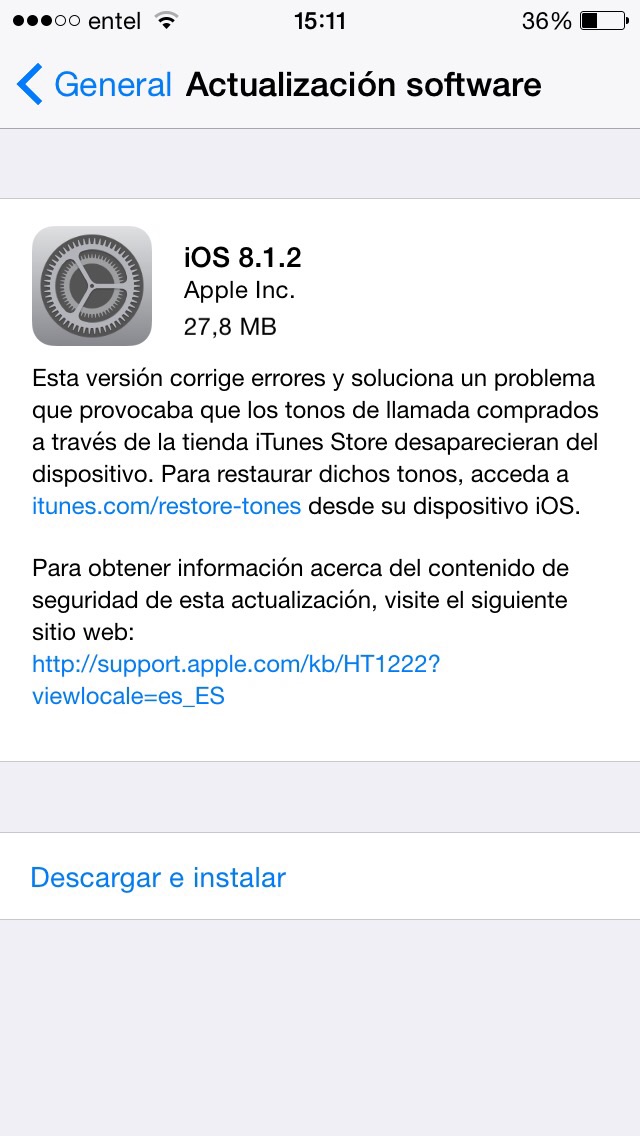 Hace tan solo unos minutos ha comenzado la distribución de iOS 8.1.2 para todos los dispositivos compatibles (desde iPhone 4S en adelante) y corrige algunos errores de las versiones previas. En concreto, soluciona también un error que eliminaba ciertos tonos de llamada cuando eran adquiridos a través de iTunes Store.