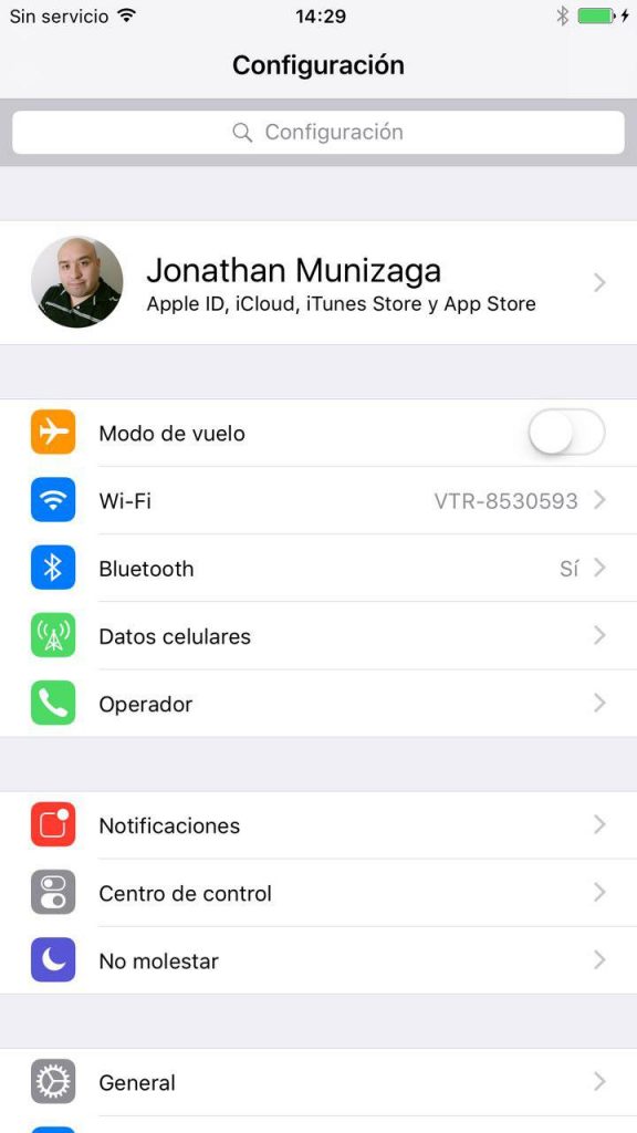 Cuando actualices tu dispositivo a iOS 10.3, vas a encontrar un cambio en el menú de Configuración, ya que ahora aparecerá tu nombre y foto al comienzo de la lista para que tengas un acceso directo a los ajustes de tu Apple ID, iCloud, iTunes Store y App Store