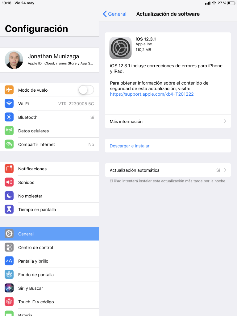 La actualización tiene un tamaño de 100MB aproximadamente — en el caso de un iPad Mini — lo que demuestra que solo viene a corregir errores y quedar a la espera de iOS 12.4 que actualmente se está probando por quienes tienen el perfil de desarrollador.