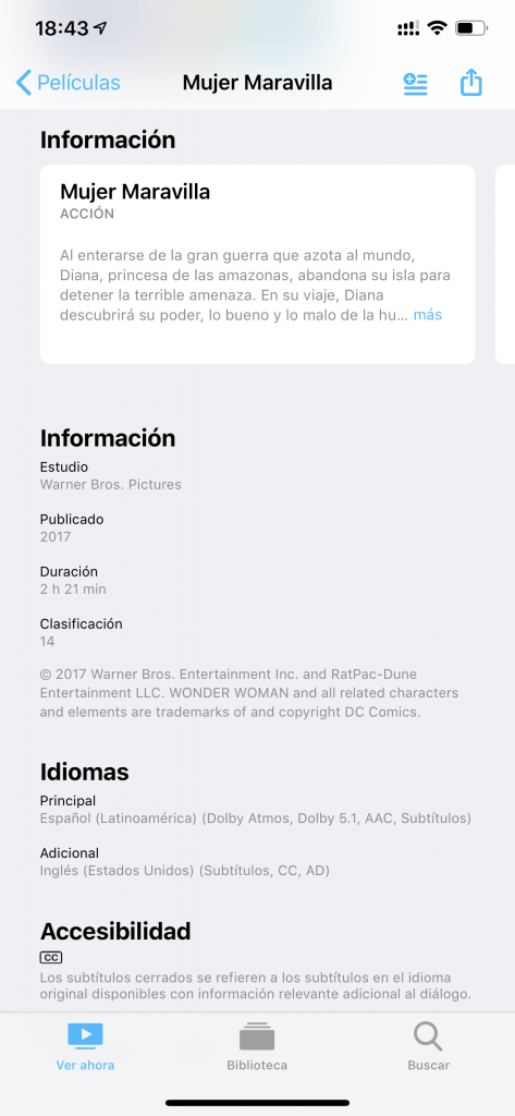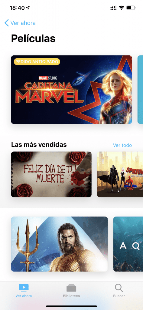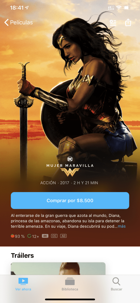 En ella podremos acceder por el momento a un variado catálogo de películas y muchas de ellas se encuentran disponibles en 4K con HDR, pudiendo ser compradas o algunas de ellas arrendadas para poder visualizarlas en nuestro dispositivo. Obviamente los precios se muestran en pesos chilenos.