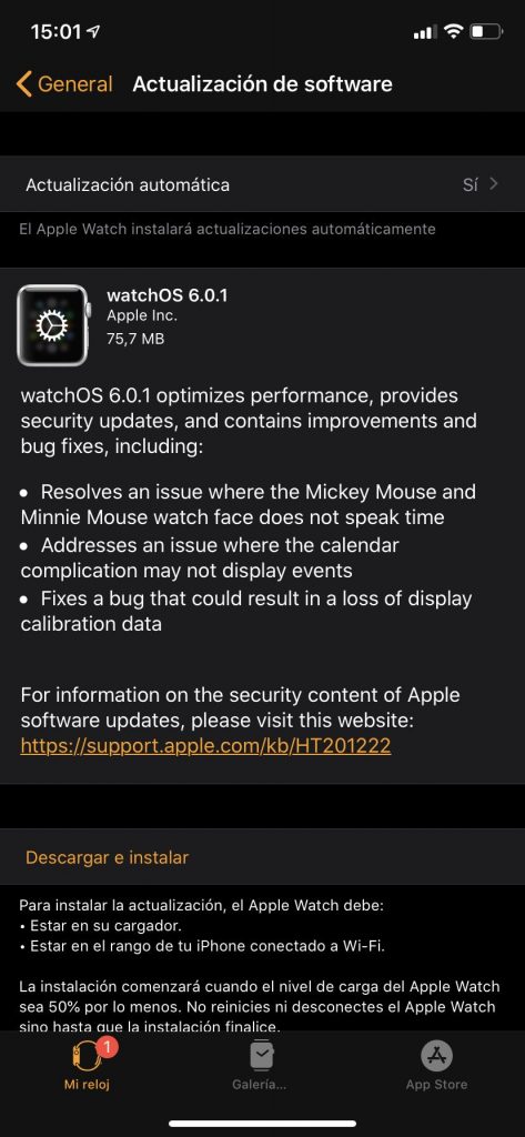 Apple también ha aprovechado la oportunidad de liberar una nueva versión para el sistema operativo del reloj inteligente de la compañía, refiriéndome a watchOS 6.0.1, la que NO está disponible para quienes estén en la beta para desarrolladores de watchOS 6.1.