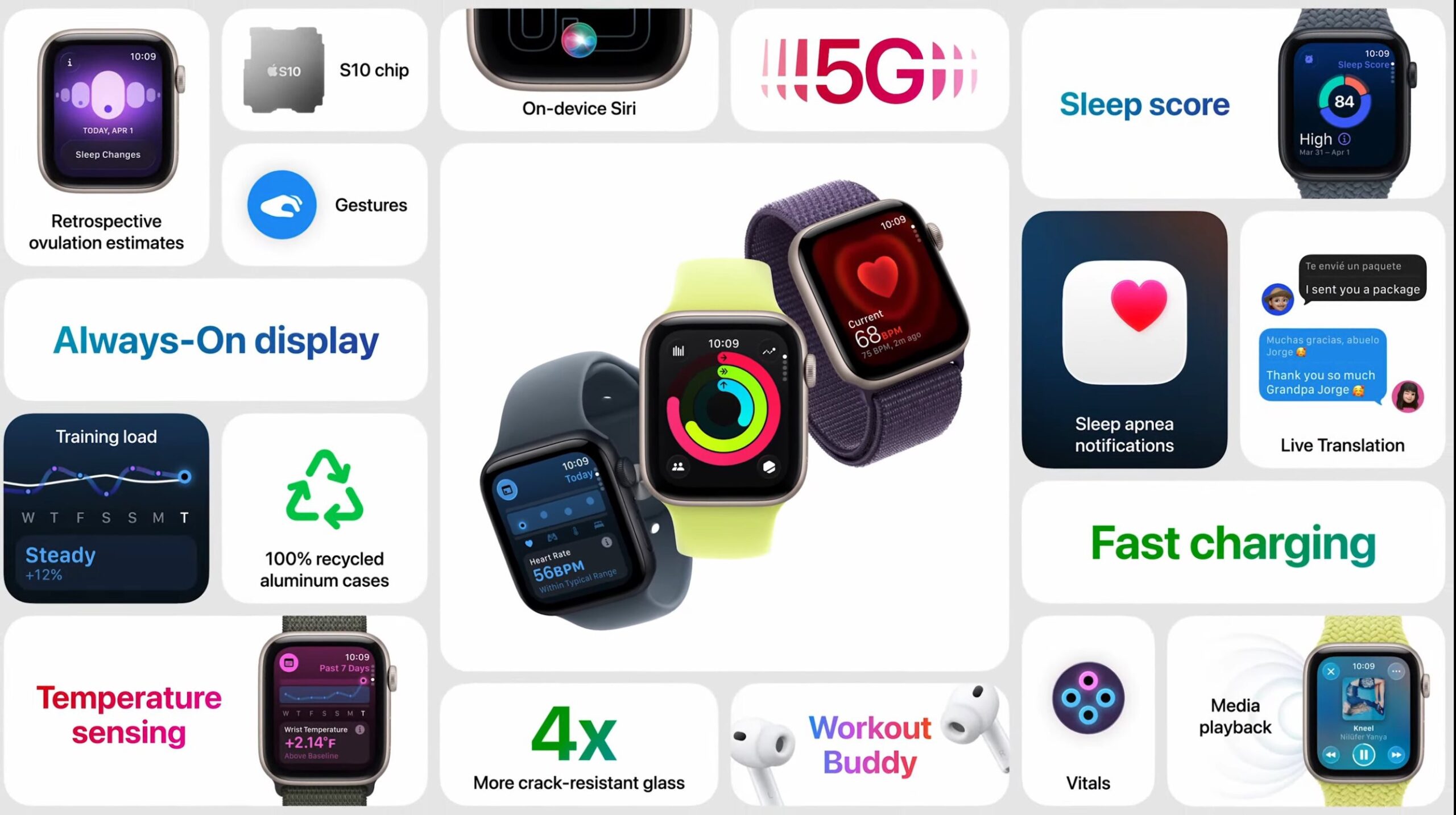Este nuevo modelo base tiene el procesador Apple S10, por lo que debería tener un rendimiento mucho mejor. Por primera vez, trae una pantalla siempre activa al modelo económico, así como soporte para gestos como el doble toque y el movimiento de muñeca.