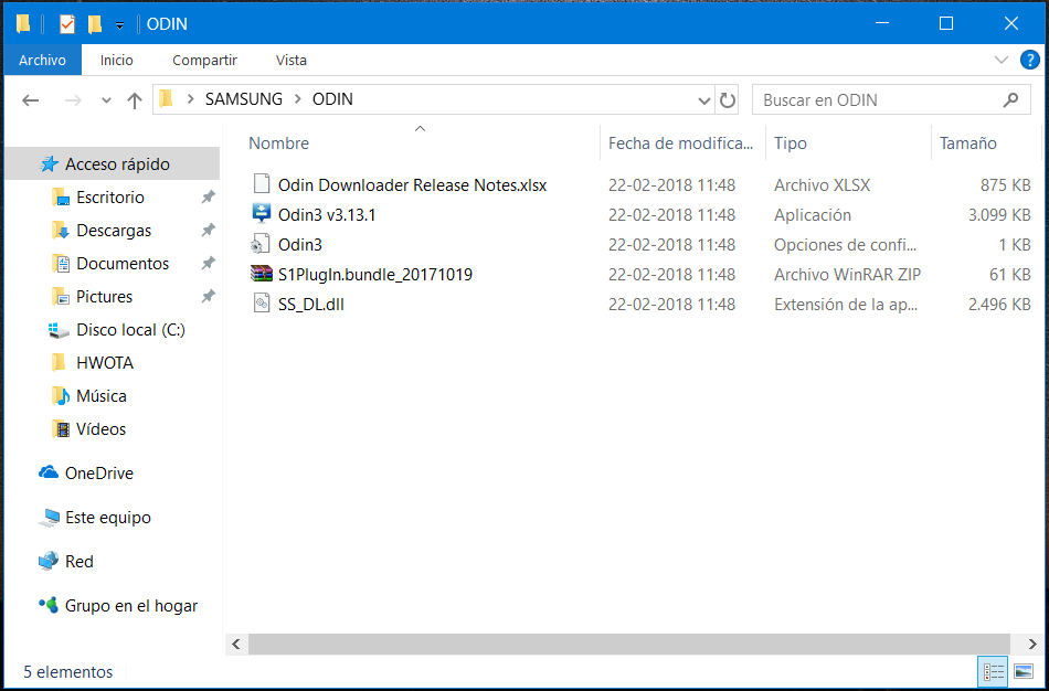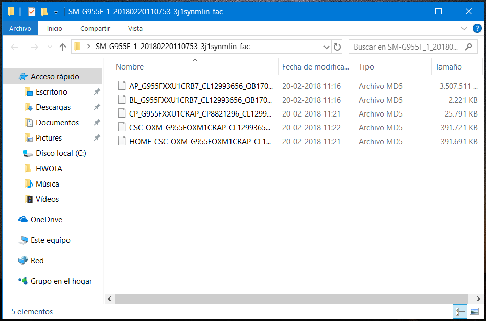 Ahora debes ubicar la carpeta donde dejaste los cinco archivos de la ROM descargada para tu S8 o S8+. ¿Los encontraste? Ok, a pesar de ser cinco archivos, solo utilizaremos cuatro de ellos, ahora te explicaré los motivos.