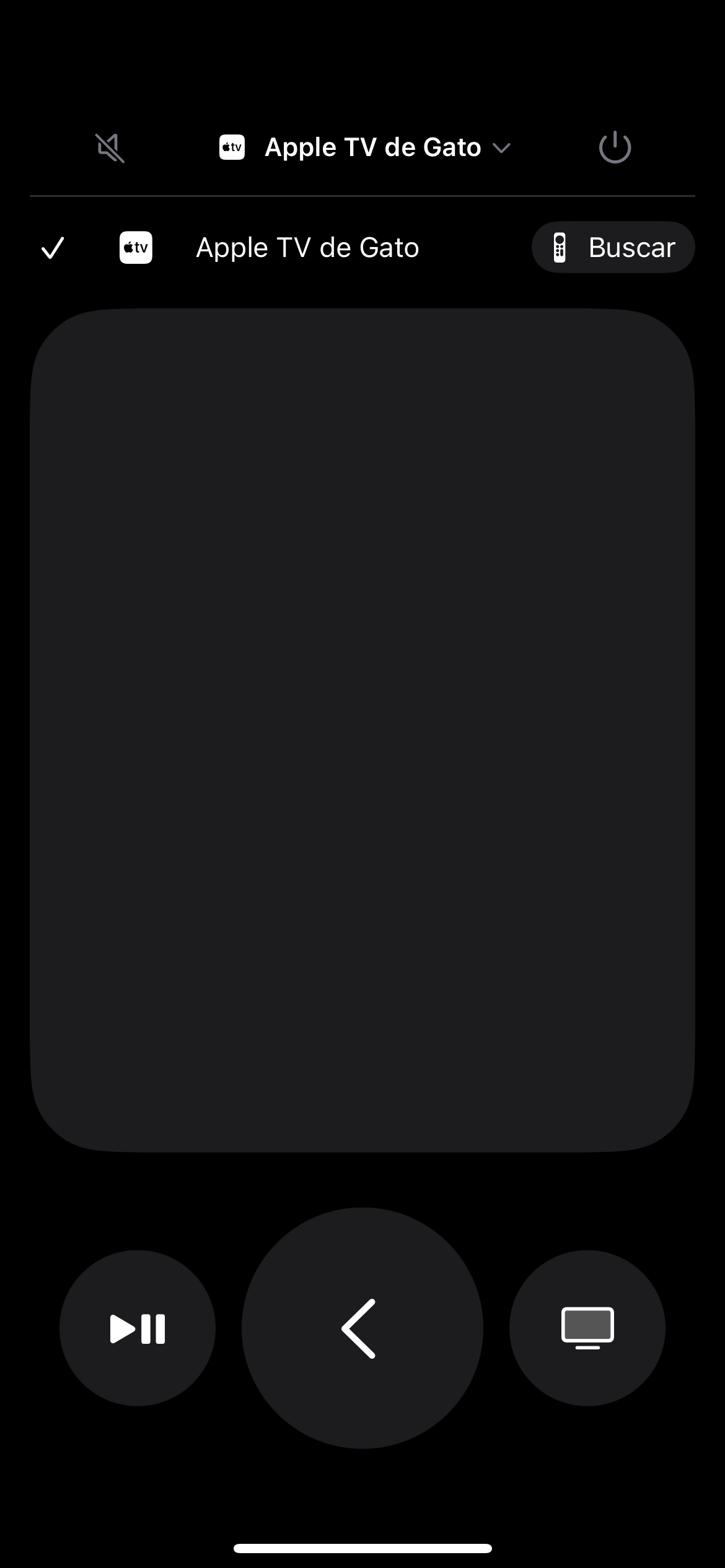 Cuando te aparezca el control remoto virtual, selecciona tu Apple TV en la parte superior y notarás que, al lado del nombre, aparece un control remoto acompañado del texto “Buscar”.