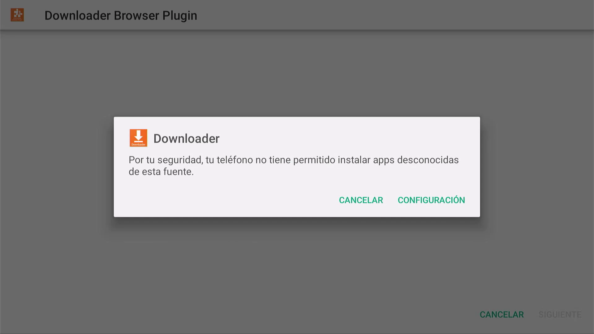 En este momento, la aplicación va a descargar dicho plugin y tu dispositivo te preguntará si quieres autorizar a que la aplicación Downloader pueda instalar aplicaciones, tu obviamente lo autorizas.
