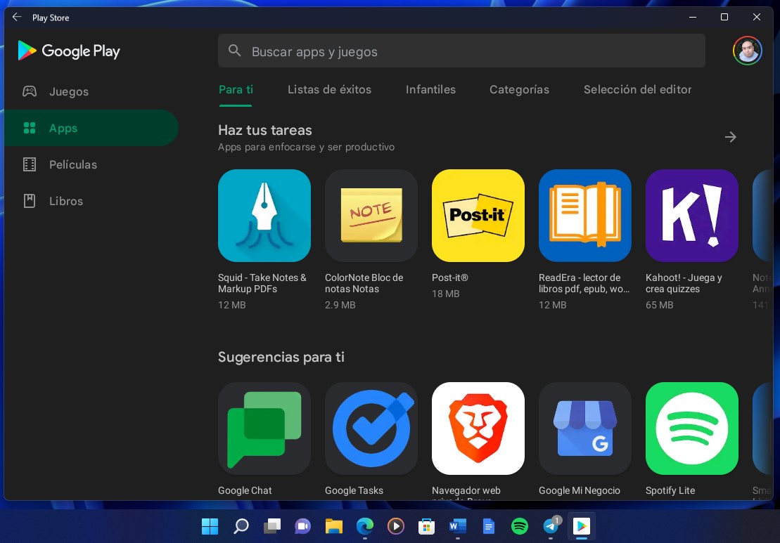 Información importante: Debido a que Windows 11 no es un «dispositivo» certificado por Google, no podrás encontrar aplicaciones que requieran dicha certificación, como Netflix, Apple Music, entre otras.
