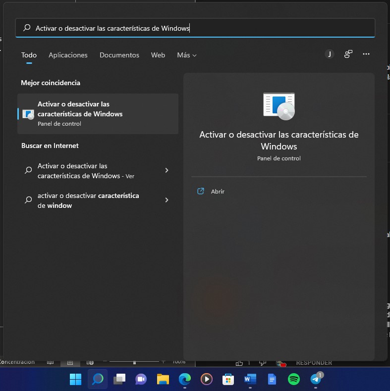 Ahora, abre el buscador de Windows y busca “Activar o desactivar las características de Windows”.