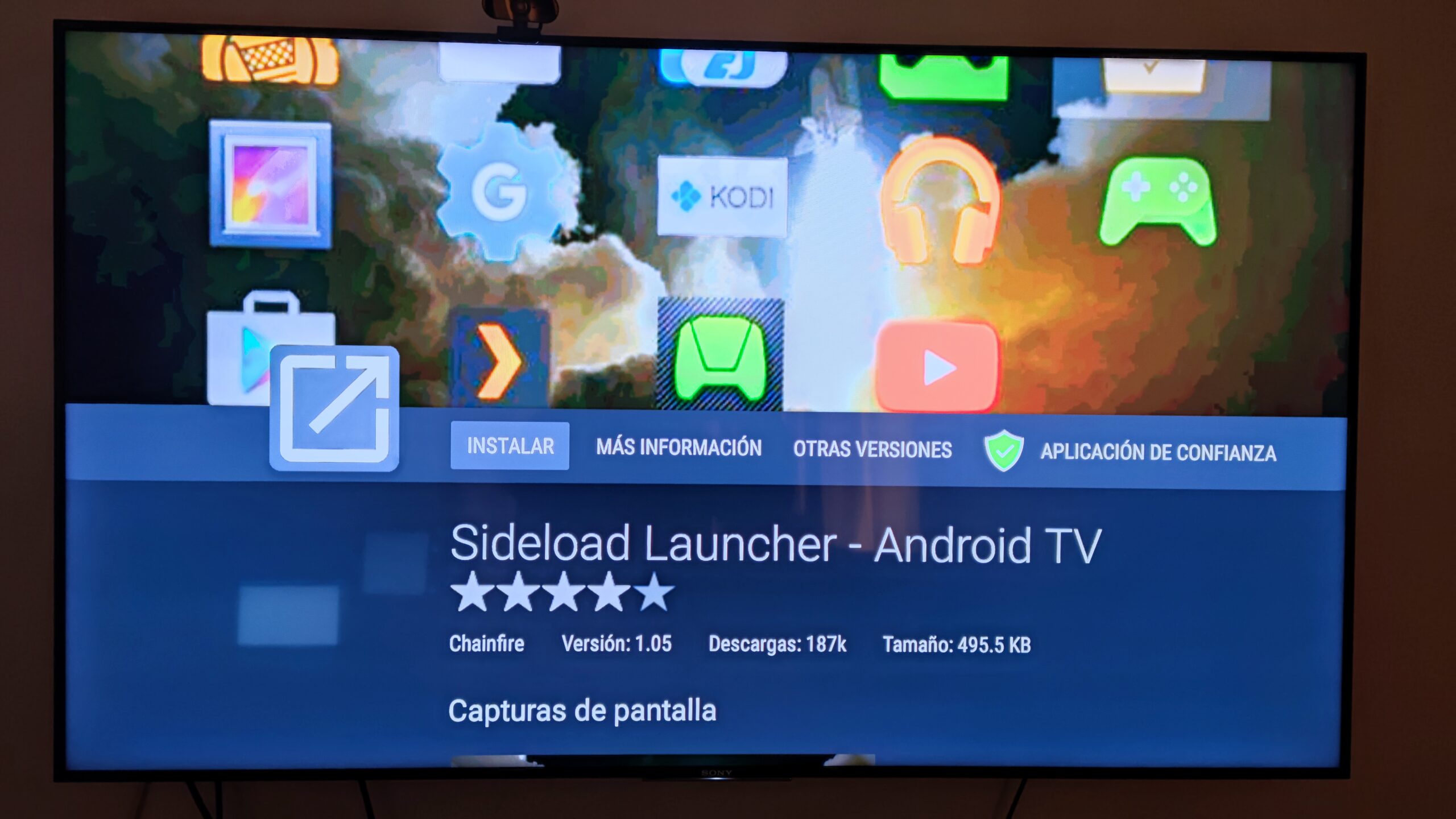 Finalmente, en Aptoide TV o en Google Play descargas e instalas la aplicación “Sideload Launcher – Android TV”. Esto nos permitirá poder abrir aplicaciones que no son compatibles con Android TV, como Sismo Detector.