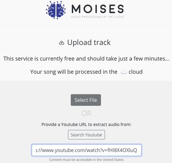 ¿No tienes el archivo a mano? Pues no importa, ya que Moises.ai nos ofrece la posibilidad de buscar la canción en YouTube donde prácticamente hay de todo.