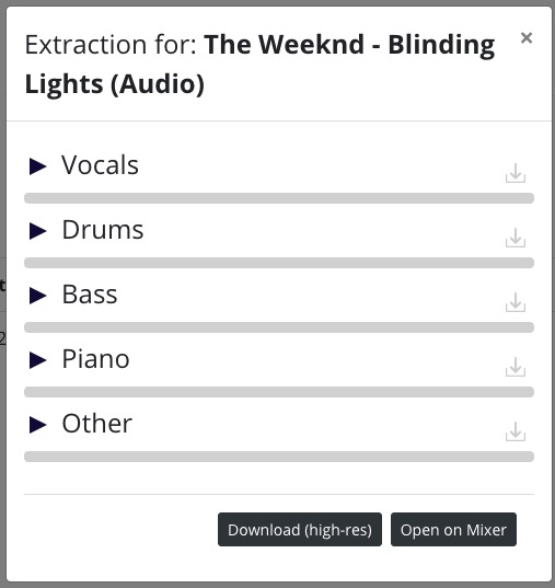 En la web aparecerá el botón “Play/Download”, debes presionarlo y te aparecerán las pistas por separado para que puedas escucharlo de manera online.