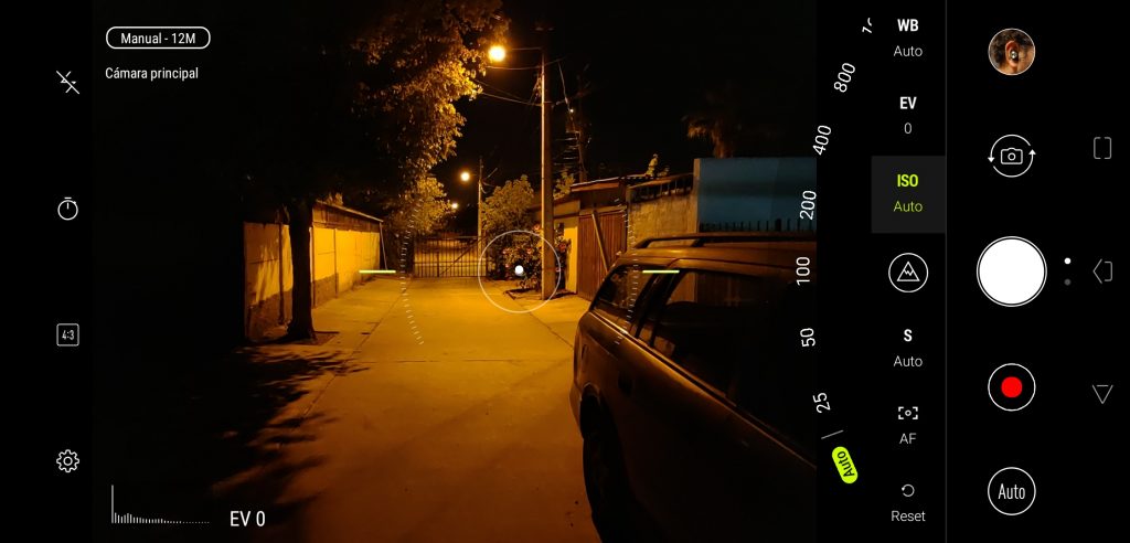 Del mismo modo, podrás conseguir un resultado similar si juegas con los valores del modo profesional, por ejemplo, acá te presento una captura con un ISO 1055 pero con un menor tiempo de exposición (1/10s):
