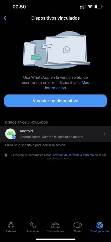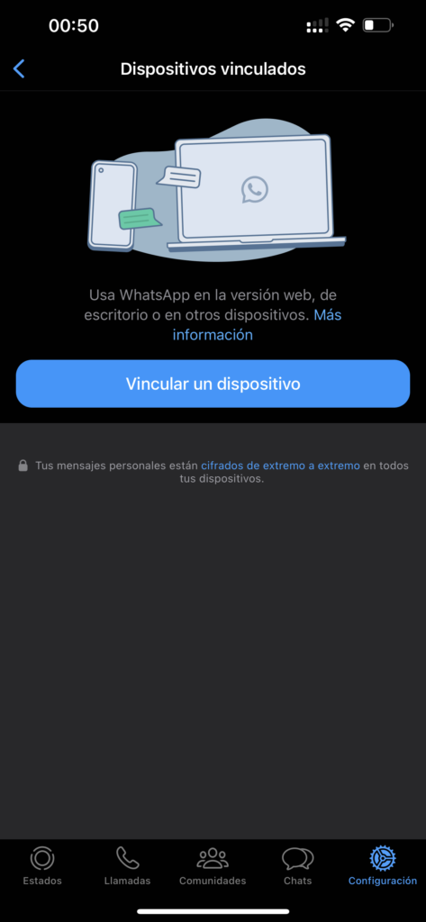 Cuando entres, debes tocar en el botón “Vincular un dispositivo”…
