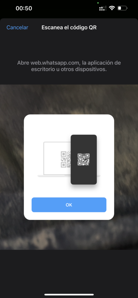 Cuando toques dicha opción, se abrirá la cámara de tu dispositivo y es en ese momento que debes escanear el código QR que el otro dispositivo te está mostrando.