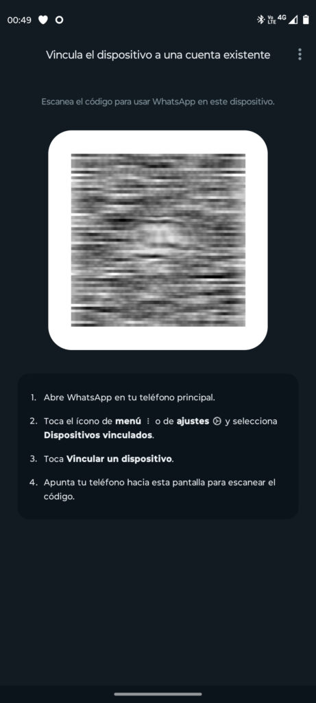 En la pantalla se te mostrará un código QR con unas instrucciones, tal cual como lo muestra la siguiente captura: