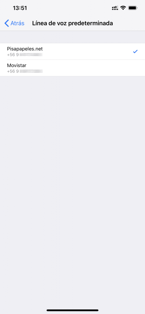 Luego tendrás la opción «Línea de voz predeterminada», para que puedas elegir con qué operador vas a realizar las llamadas de manera predeterminada, aunque al momento de marcar a un número te dará la opción de cambiar de operador.