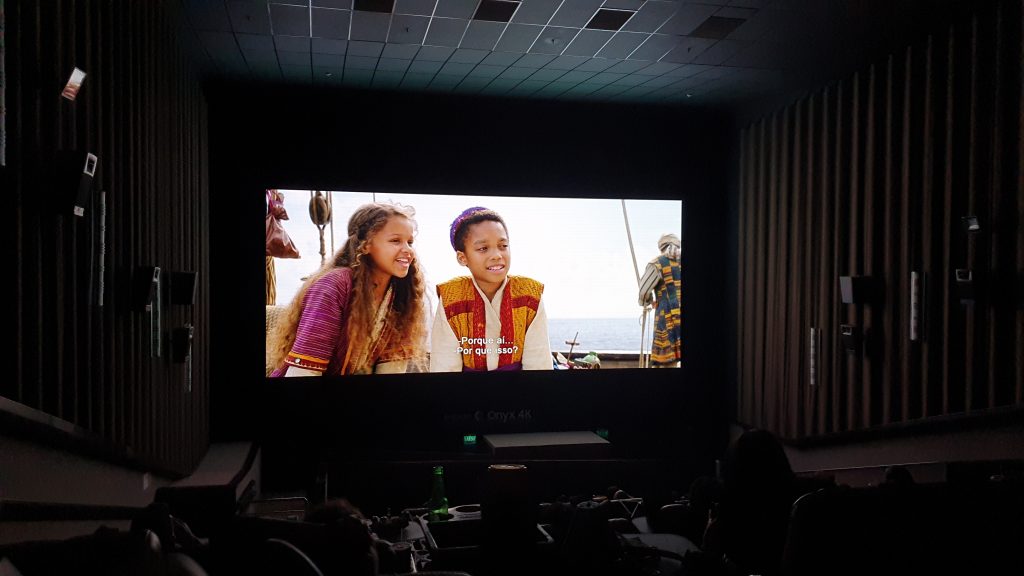 Según la compañía, la nueva definición y claridad ofrecida por Onyx 4K mejora la nitidez de los subtítulos, lo que a mi parecer tampoco es algo sustancial. Si bien las diferencias a una sala de cine común y corriente, es importante, en general la experiencia de esta nueva pantalla no es algo que sorprenda. Si me parece muy bueno que la definición ayude tanto que incluso se pudieran dejar las luces del cine prendida sin afectar la proyección de la película. Así como también el soporte para ver películas 3D.