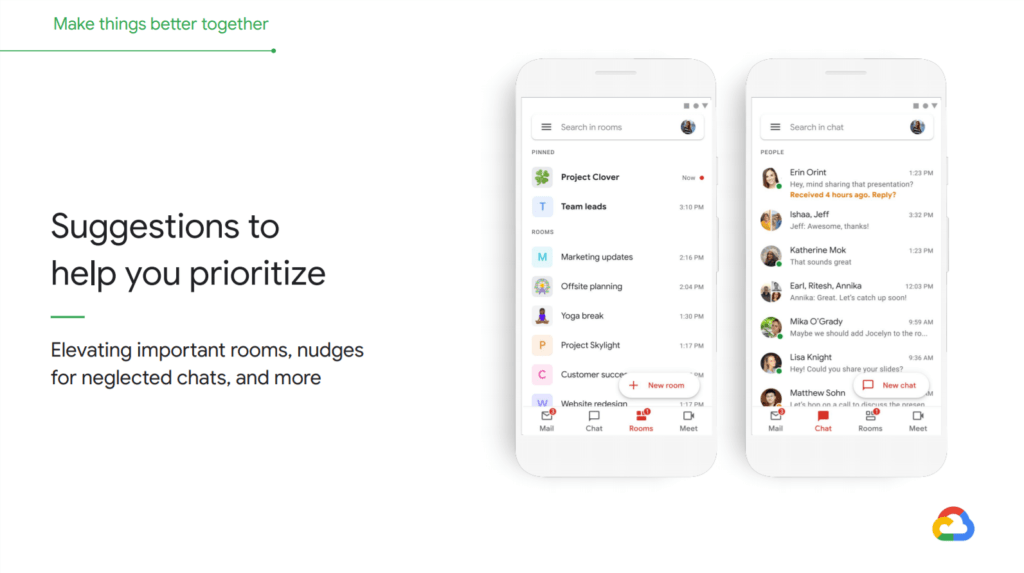 Es importante recordar que Meet ya se integró en Gmail para iOS y Android. Es decir, las diapositivas de esta ocasión denotan que Google quiere ir un pasó más allá con su ecosistema. Asimismo, agregamos que en Chat y Rooms también recibiríamos recordatorios de seguimiento si la gente no responde a tiempo.