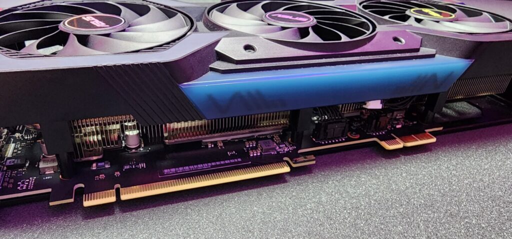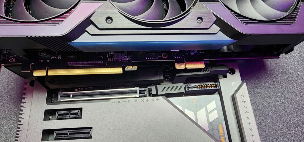 La GeForce RTX 4070 Megalodon es un nuevo concepto de tarjetas gráficas de ASUS. Con esta tarjeta, el fabricante busca una fuente de alimentación sin conectores comunes con cables. En lugar de los habituales conectores de 6, 8, 12 o 16 pines, utiliza una interfaz similar a PCIe proporciona suficiente alimentación y menos desorden de cables en el gabinete. Con esto se podría decir adiós a los típicos cables y conectores 12VHPWR.
