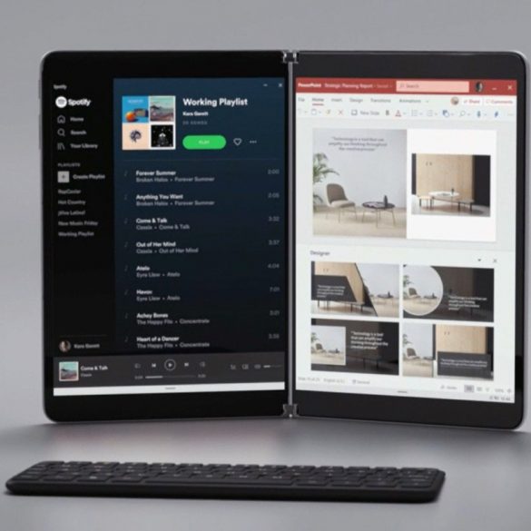Microsoft quiere saltarse todas las complicaciones de hacer un dispositivo plegable, por eso el Surface Neo viene con dos pantallas.