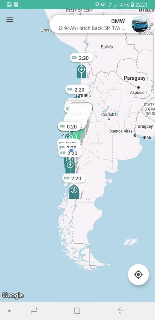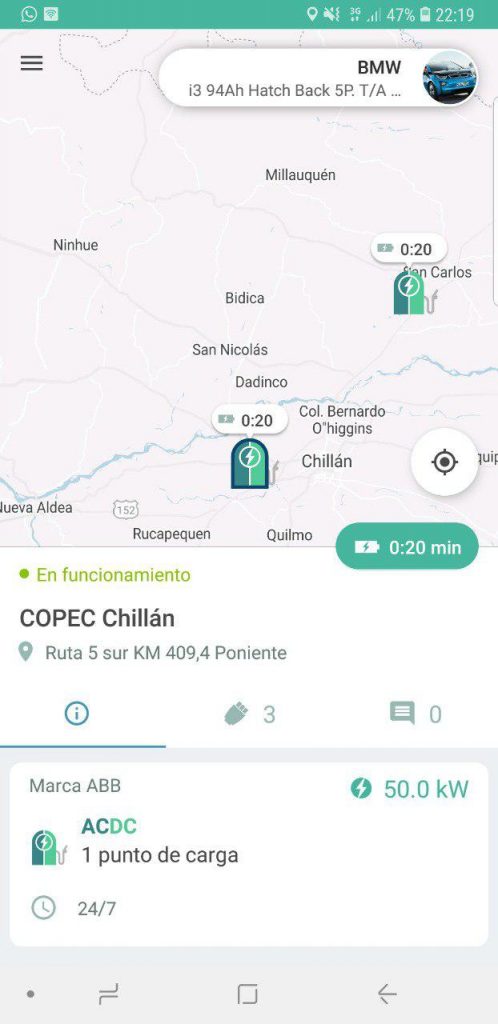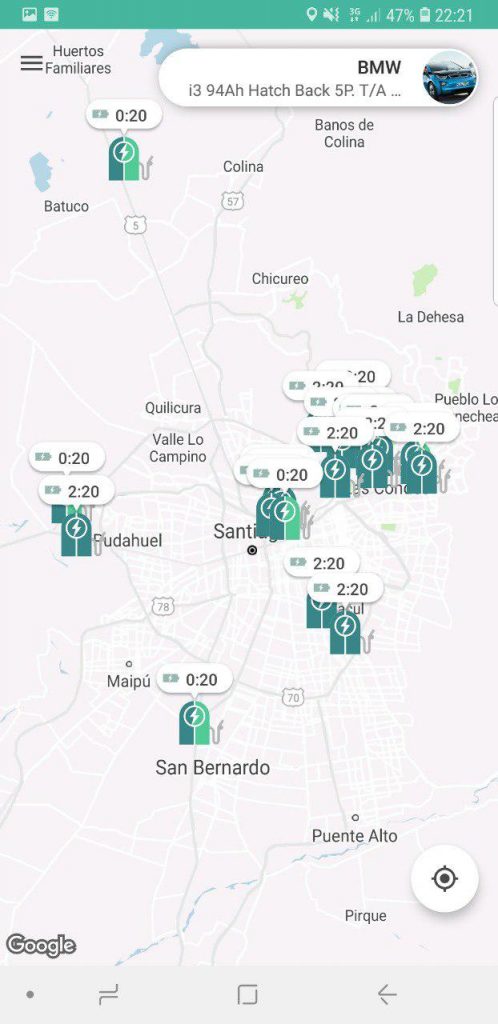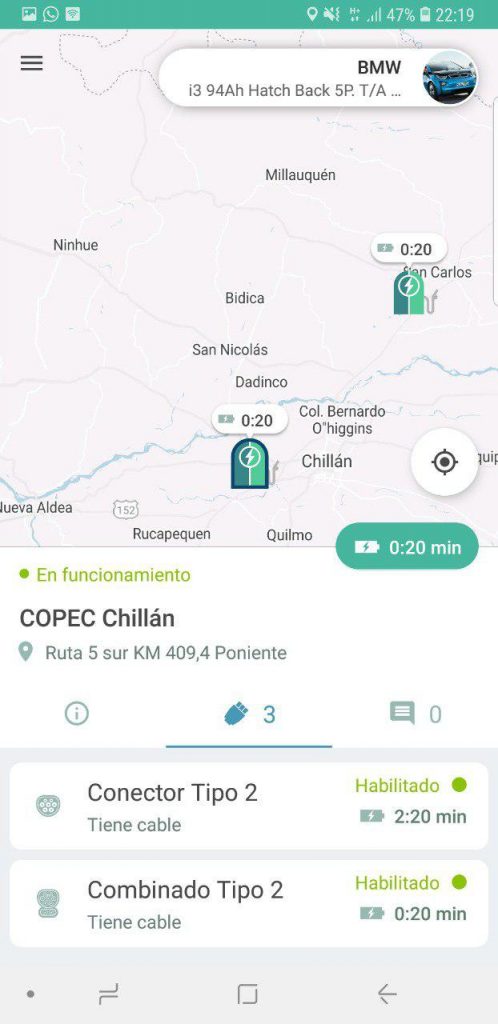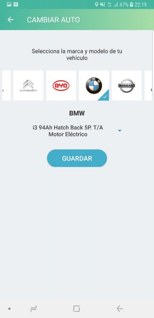 Sin embargo, lo que más me llamó la atención de esta aplicación, y sin duda lo más útil de esta, es que nos permite seleccionar el vehículo específico que tenemos (te ofrece los modelos de las marcas que oficialmente comercializan autos eléctricos en Chile). Aquello permite a la aplicación que nos indique el tiempo estimado de carga y las electrolineras que son y no compatibles con nuestro auto.