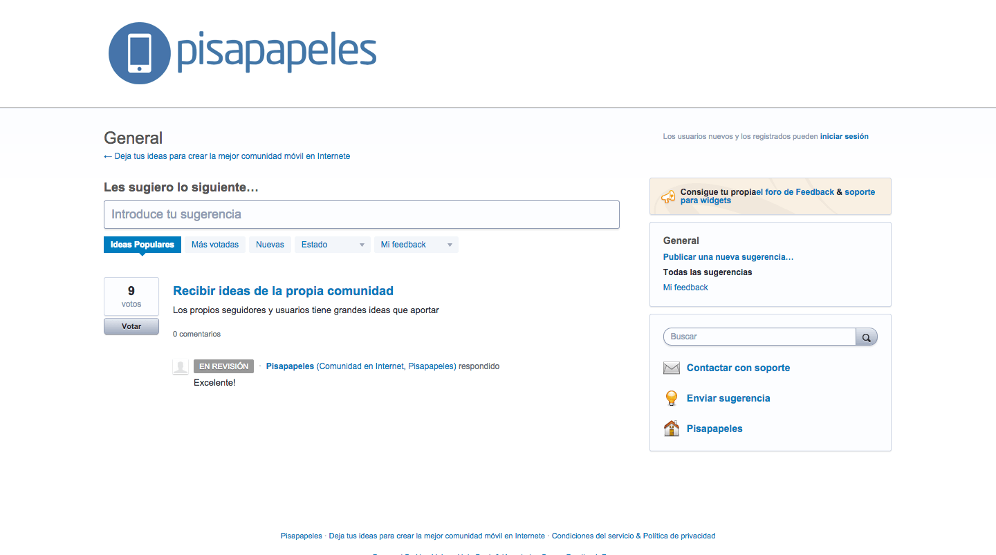 Como decíamos al principio, en Pisapapeles hemos tomado el desafío de crear la mejor comunidad móvil en Internet y estamos seguros del gran aporte que tu, estimado lector, puedes ser en el proceso. Por esto hemos habilitado un servicio especialmente pensado para proponer ideas y votarlas entre los usuarios. Analizaremos todas las sugerencias y haremos los esfuerzos para hacerlas realidad.