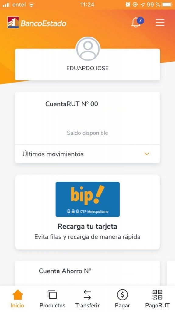 Al igual que la versión anterior, podrás recargar la tarjeta BIP, habilitar el uso de la huella para ingresar a la aplicación, buscar sucursales, llamar al banco para emergencias, entre otras funciones ya conocidas.